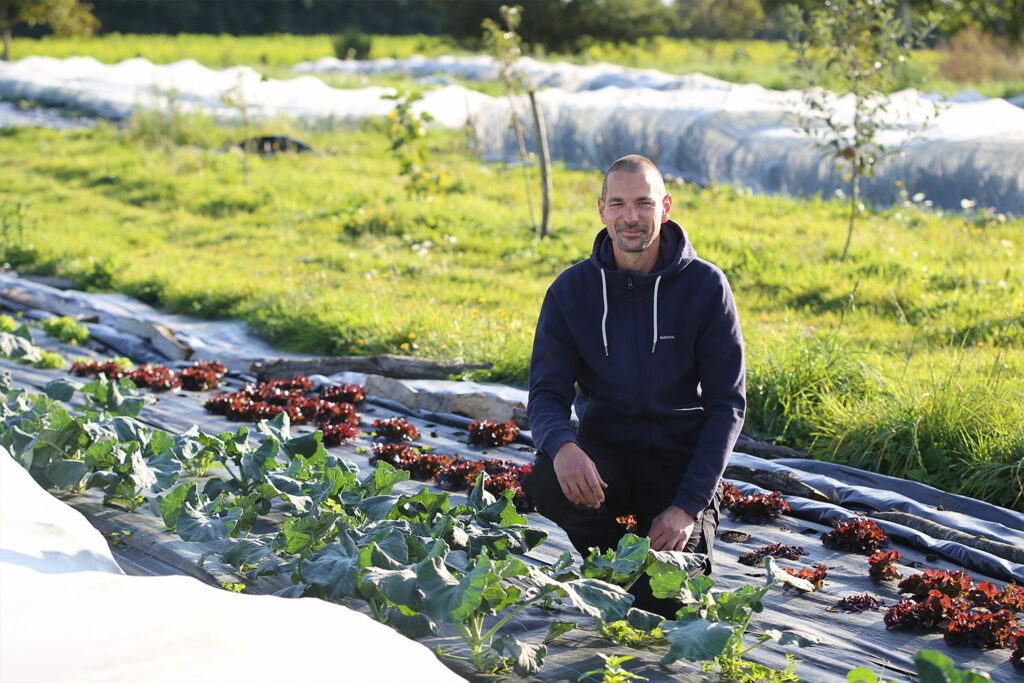 Installé depuis 2023 à Plouasne (Côte d’Armor, Bretagne), je cultive à l’année une quarantaine de variétés de légumes sur une surface de 6 000 m2, comprenant une serre bi-tunnel et une serre à plants.
